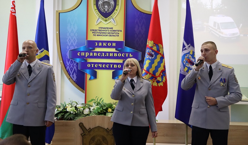Торжественную часть продолжил праздничный концерт, кульминацией которого стало исполнение сотрудниками гимна УСК по Минской области.