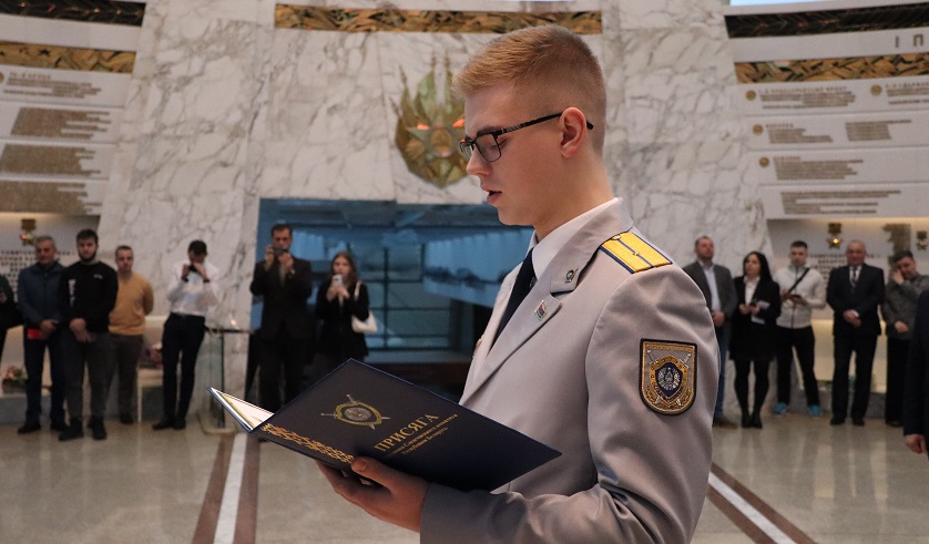 Каждый из новоиспеченных сотрудников, произнося слова клятвы на верность белорусскому народу, отдал дань уважения памяти павших героев, осознанно вписывая свои имена в историю служения Отечеству.