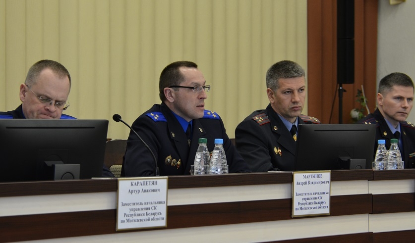 В совещании приняли участие начальник УСК по Могилевской области Андрей Лис, начальник УВД Могилевского облисполкома Игорь Щербаченя, начальник УГКСЭ по Могилевской области Ярослав Федоринчик, руководители структурных подразделений УСК и УВД, территориальных подразделений Следственного комитета и органов внутренних дел Могилевской области.