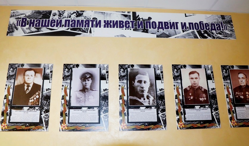 Отечественной войны. На первом этаже здания размещены портреты бойцов и