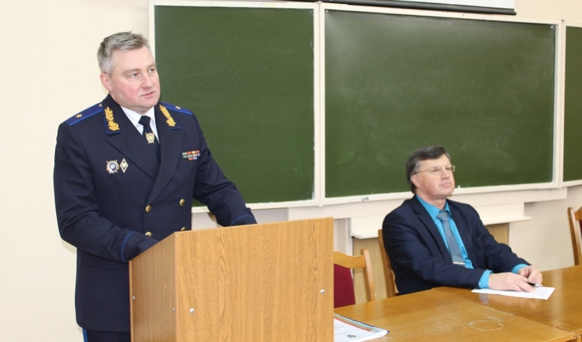 Высказать свою точку зрения, задать интересующий вопрос и вступить в диалог с профессионалом – именно такую возможность 14 февраля получили студенты юридического факультета Витебского государственного университета имени П.М.Машерова. Начальник управления Следственного комитета по Витебской области генерал-майор юстиции Владимир Шалухин выступил с лекцией перед будущими юристами.