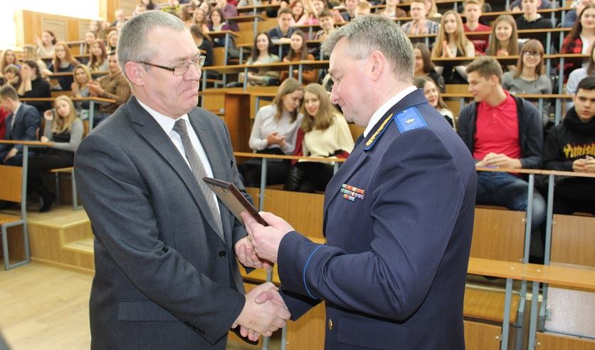 Кроме того, Владимир Васильевич выразил благодарность за сотрудничество со следователями руководству юридического и исторического факультета, вручив благодарности деканам и преподавателям старейшего в Витебской области высшего учебного заведения.