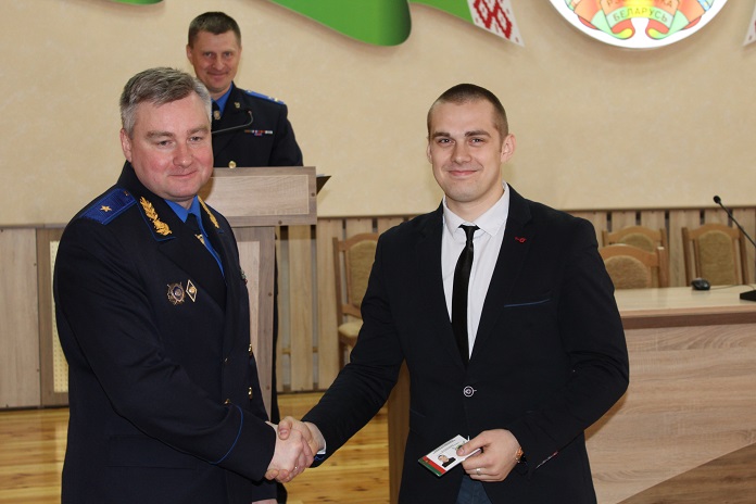 «После окончания Полоцкого государственного университета хочу поступить на службу в Следственный комитет. Работа внештатного сотрудника уже сейчас позволит мне прикоснуться к работе следователя, почувствовать весь романтизм и ответственность, проверить свои силы и знания, перенять опыт у лучших следователей. Это первая ступенька, чтобы стать следователям и служить Закону», - с гордостью заявил Александр Мазаник, получивший удостоверение из рук главного следователя Витебской области.