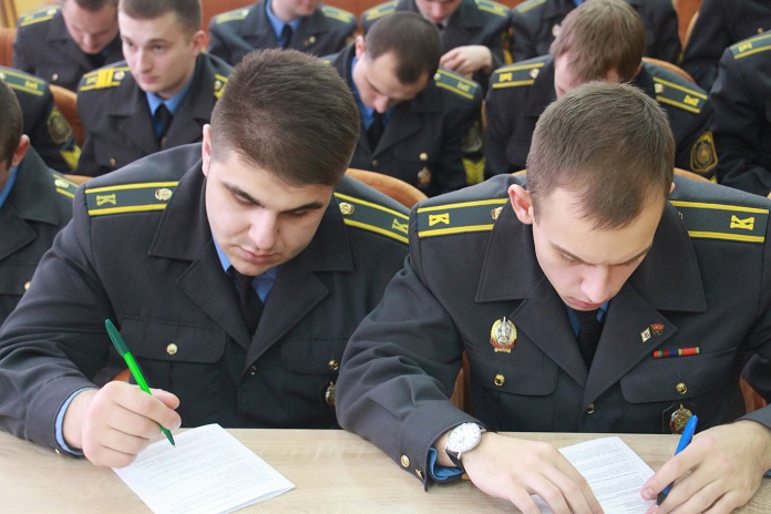 В конце своего выступления Владимир Васильевич отдельно отметил, что день встречи был выбран не случайно, и от всей души поздравил курсантов с Днём милиции, пожелал дальнейших успехов в службе. Начальник управления заметил, что меняя в конце обучения мундир сотрудника органов внутренних дел на мундир сотрудника Следственного комитета важно не изменить своему отношению к делу, которому посвящает себя каждый сотрудник правоохранительных органов, – служению Отчизне и народу Республики Беларусь.
