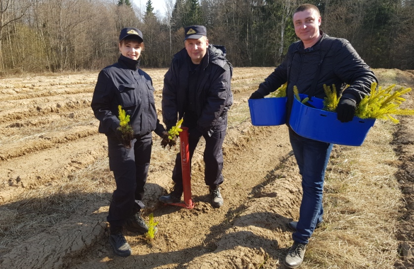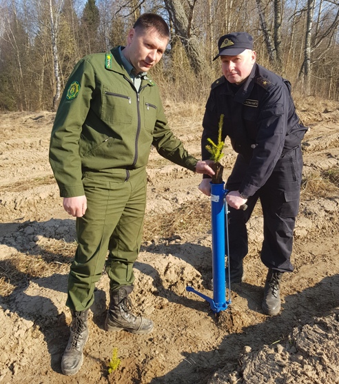 В Беларуси стартовала добровольная акция «Неделя леса – 2019». Сотрудники УСК по Витебской области не остались в стороне и во главе с начальником управления Владимиром Шалухиным, а также с директором ГЛХУ «Витебский лесхоз» Михаилом Филиновичем, на территории Мошканского лесничества высадили елки и березы.