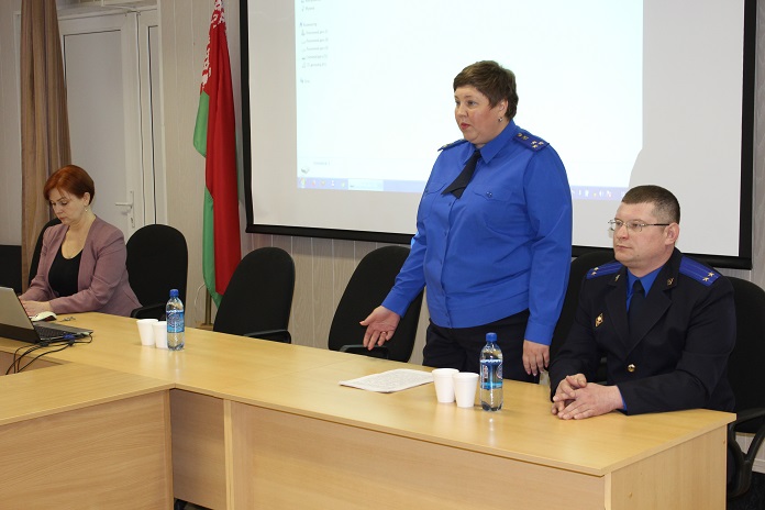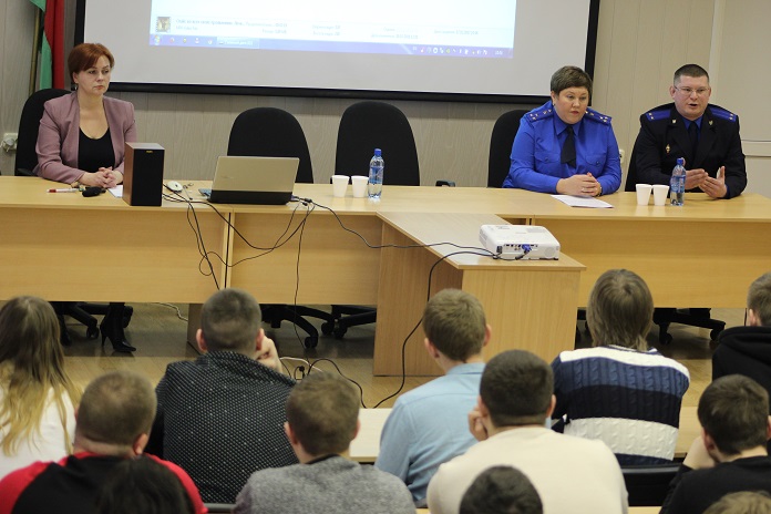 15 марта заместитель начальника 3-го следственного отделения Татьяна Белясова и следователь по особо важным делам Иван Демидович Витебского ГОСК выступили с лекцией о профилактике преступлений в сфере незаконного оборота наркотических средств и психотропных веществ перед студентами Витебского государственного технологического университета.