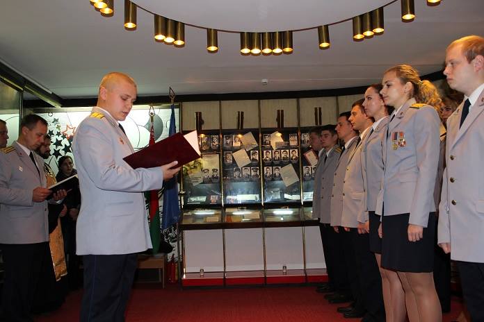 17 молодых сотрудников управления Следственного комитета по Витебской области, среди которых 10 выпускников Академии МВД, в торжественной обстановке принесли присягу на верность Республике Беларусь и ее народу.