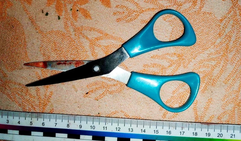 На месте происшествия работала следственно-оперативная группа. Проведен осмотр, в ходе которого изъяты предметы и объекты, по которым назначены необходимые экспертные исследования. Изъято орудие преступления – ножницы.