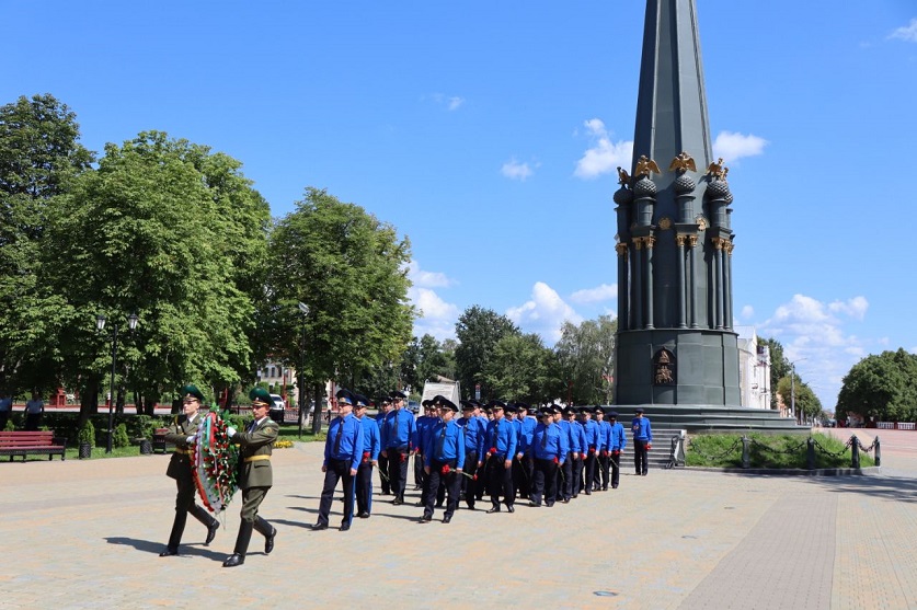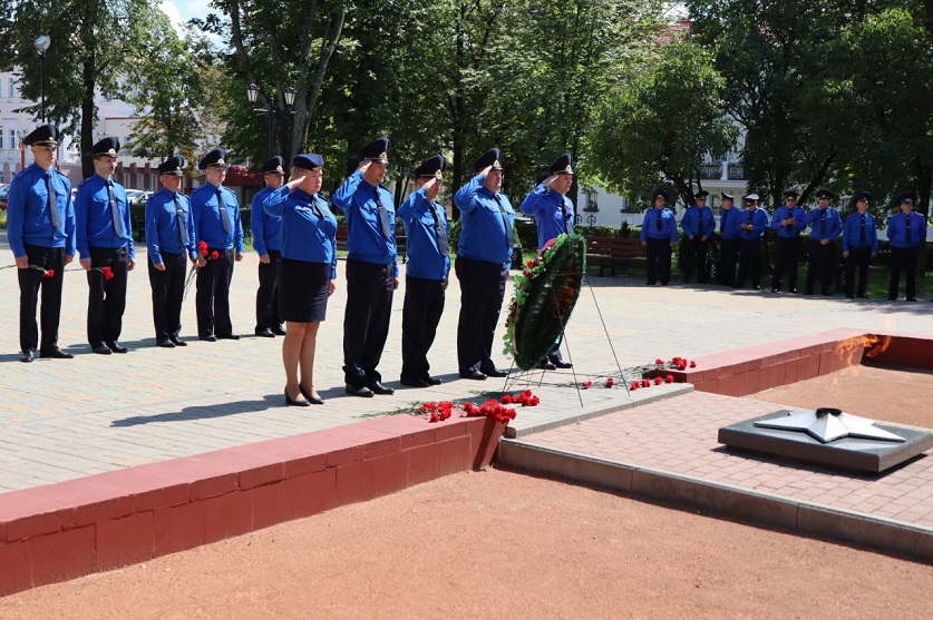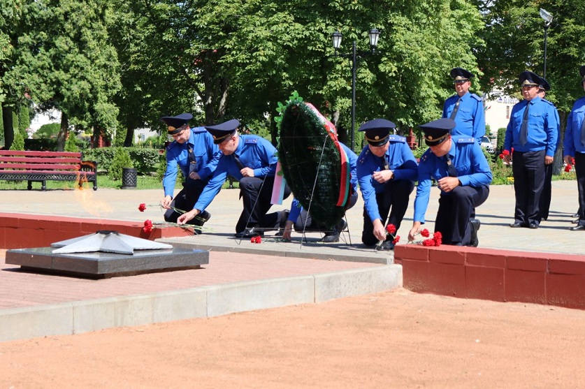 После совещания сотрудники ведомства направились на площадь Свободы, чтобы в год 80-летия освобождения Беларуси от немецко-фашистских захватчиков отдать дань памяти погибшим в боях за Родину. Возложив венок и цветы к памятнику «Освободителям Полоцка», следователи склонили головы во время минуты молчания.