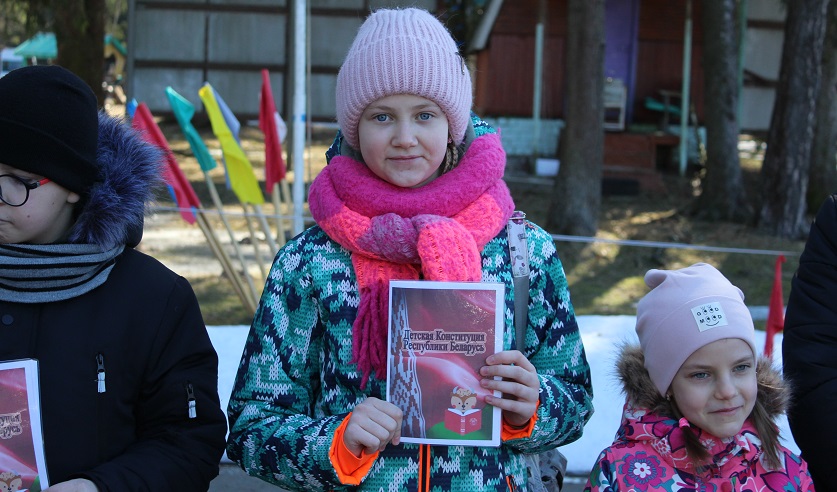 Принимая участие в акции «Молодежь за Конституцию – вместе мы сила», все участники праздника приняли участие во флешмобе. А заместитель начальника УСК по Витебской области Вячеслав Скрицкий вручил всем юным участникам мероприятия детскую Конституцию и памятные подарки.