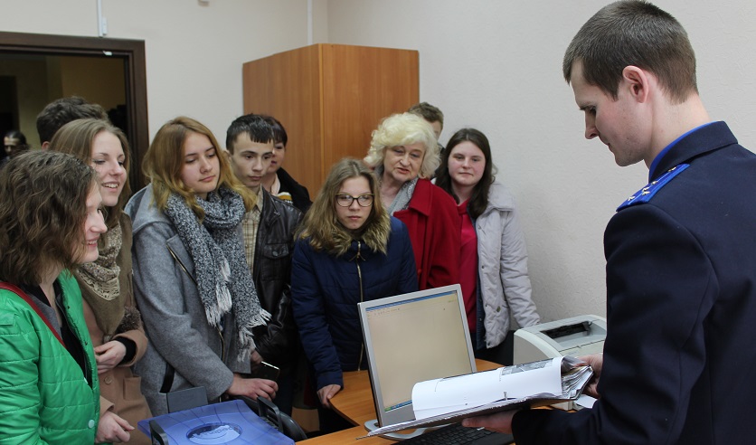 Старшеклассники заглянули в рабочие кабинеты следователей, побывали на импровизированном месте происшествия, выступая в роли понятых, ознакомились с возможностями передвижной криминалистической лаборатории.