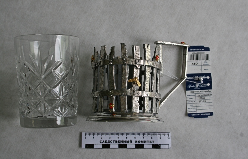 В ходе проведения обысков по месту жительства и работы обвиняемого обнаружены и изъяты дорогостоящие предметы, в том числе 10 наручных часов и несколько ручек известных брендов, номерной золотой слиток весом 5 грамм, 2 номерных серебряных слитка весом 50 и 250 грамм, коллекционные монеты, серебряный подстаканник, несколько мобильных телефонов, алкогольные напитки известных производителей, а также автомобиль Audi Q7 и другое имущество.