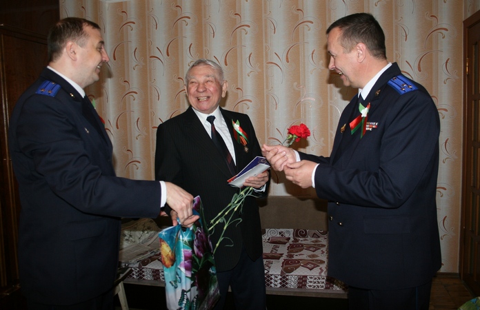Сотрудники УСК по Гомельской области поздравили с Великой Победой бравого полковника Федора Григорьевича Лашука