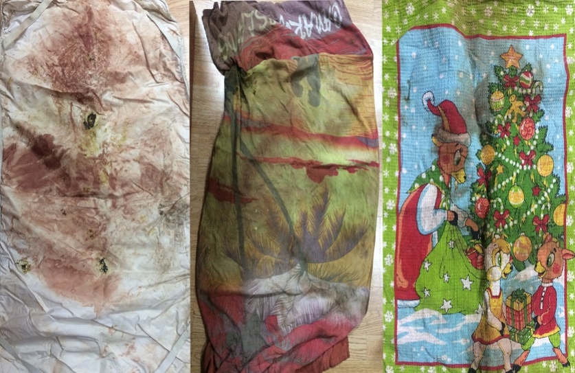 на фото: наматрасник, простынь и полотенце, в которые был завернут ребенок