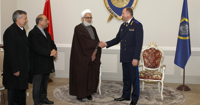 С иранской стороны на встрече также присутствовали Чрезвычайный и Полномочный Посол Исламской Республики Иран в Республике Беларусь Мохаммад Реза Сабури, представители Генеральной прокуратуры и Посольства Ирана.