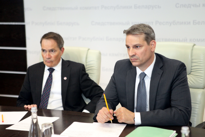 В центральном аппарате Следственного комитета Республики Беларусь 28 августа 2017 г. состоялась рабочая встреча Председателя Следственного комитета Республики Беларусь Ивана Носкевича с представителем Федерального бюро расследований Соединенных Штатов Америки по правовым вопросам Йоханнесом Ван Ден Хугеном, Временным поверенным в делах США в Республике Беларусь Робертом Райли, сотрудниками Посольства Соединенных Штатов Америки в Республике Беларусь.