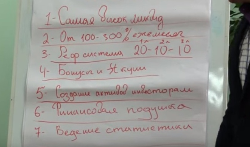 С целью привлечения большего количества инвесторов, молодой человек распространял заведомо ложные сведения о получении проектом дохода от участия в бинарных опционах и букмекерских биржах, а также оптовой продажи товаров из Китая и сдачи в аренду недвижимости.