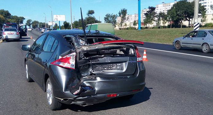 В это время в первой полосе ехал водитель мотоцикла Honda. Не убедившись в безопасности совершаемого им маневра, он перестроился в третью полосу, где в связи с образовавшимся затором снижал скорость автомобиль Honda Insight. Для избежания аварии мотоциклист применил резкое торможение, что привело к опрокидыванию транспортного средства и столкновению с машиной.