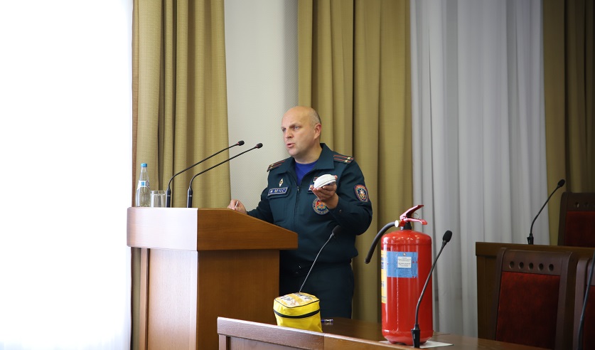 В ходе мероприятия Сергей Владимирович напомнил присутствующим основные правила по обеспечению пожарной безопасности и алгоритм действий в случае чрезвычайных ситуаций.