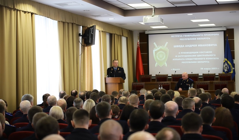 Генеральный прокурор Республики Беларусь Андрей Швед выступил перед руководящим составом и сотрудниками центрального аппарата Следственного комитета, указал на важность организации надлежащей антикоррупционной работы, обсудил проблемные вопросы соблюдения законодательства на стадии предварительного расследования.