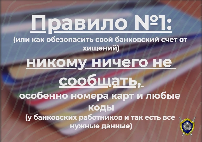 Гомельские следователи сообщают о случаях, когда по телефону говорят, что владелец счета стал жертвой мошенников и SMS-коды нужны для того, чтобы «спасти» деньги, а на уведомления о снятии средств просят не реагировать, ведь деньги якобы именно таким образом сохраняются.