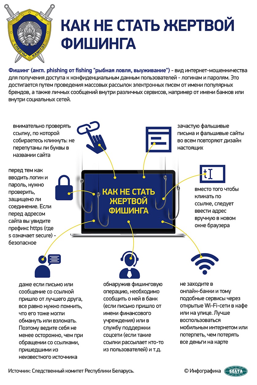 «На данный момент для противодействия фишингу мы выработали целый комплекс мер. Одной из них является своевременная блокировка фишинговых ресурсов, который являются основным инструментарием злоумышленников при совершении преступлений. Если ранее на блокировку затрачивалось определенное время, то сейчас совместно с МВД и Генпрокуратурой мы выработали подход, который позволяет блокировать фишинговые ресурсы в течение суток после выявления», - сказал Иван Судникович.