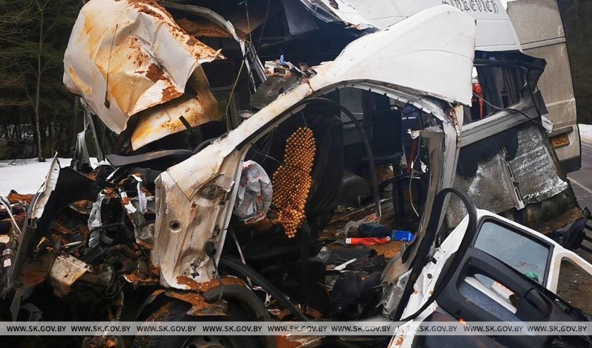 Около 14:55 он делал четвертый рейс. Самосвал был загружен песком более чем на 20 тонн, что превышает установленную заводом массу перевозимого груза. Он ехал на 9 км автодороги Р69 Смолевичи - Смиловичи - Правдинский - Шацк со стороны деревни Пекалин в направлении деревни Слобода со скоростью 65-70 км/ч. Это привело к разрушению правой рессоры, из-за чего водитель грузовика потерял управление и выехал на полосу встречного движения. В результате он столкнулся с двигавшимся во встречном направлении автобусом Citroen Jumper, который вез пассажиров по маршруту Смолевичи - Минск через Пекалин. Свою вину в инкриминируемом ему преступлении водитель признал полностью.