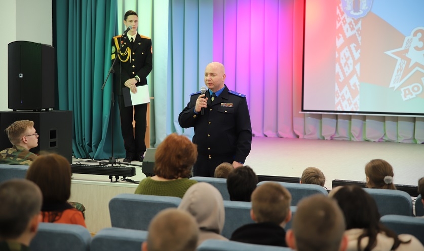 В Минском городском кадетском училище состоялся Урок Памяти, приуроченный к 77-й годовщине Победы в Великой Отечественной войне. В рамках проведения данного мероприятия с учащимися встретился Председатель Следственного комитета Дмитрий Гора.