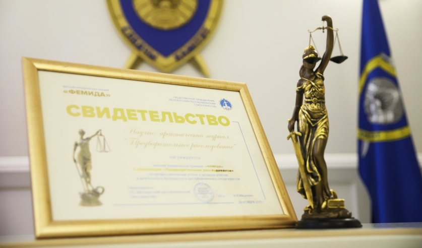 В преддверии Дня юриста, 29 ноября, в Минске состоялась церемония вручения высшей юридической премии «Фемида». Решением профессионального жюри научно-практический журнал «Предварительное расследование» за профессиональные успехи и активное участие в деятельности общественного объединения «Белорусский республиканский союза юристов» признан победителем в номинации «Предварительное расследование».