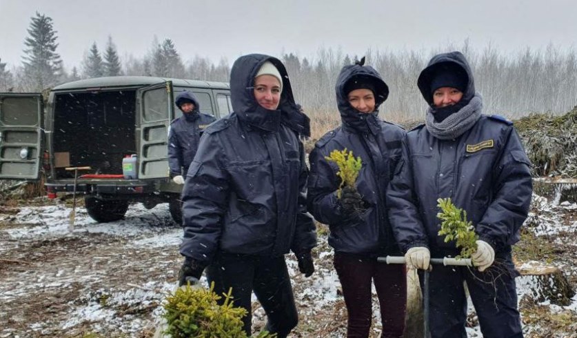 Сотрудники УСК по Брестской области во главе с начальником управления Дмитрием Конопляником приняли участие в республиканской акции «Неделя леса» в Меднянском лесничестве ГЛУ «Брестский лесхоз».