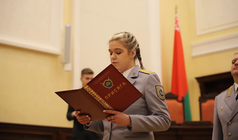 После, состоялась церемония принесения Присяги на верность Республике Беларусь и ее народу. Молодые следователи дали торжественную клятву служить своему Отечеству, защищать права и свободы граждан, бороться с нарушителями Закона.