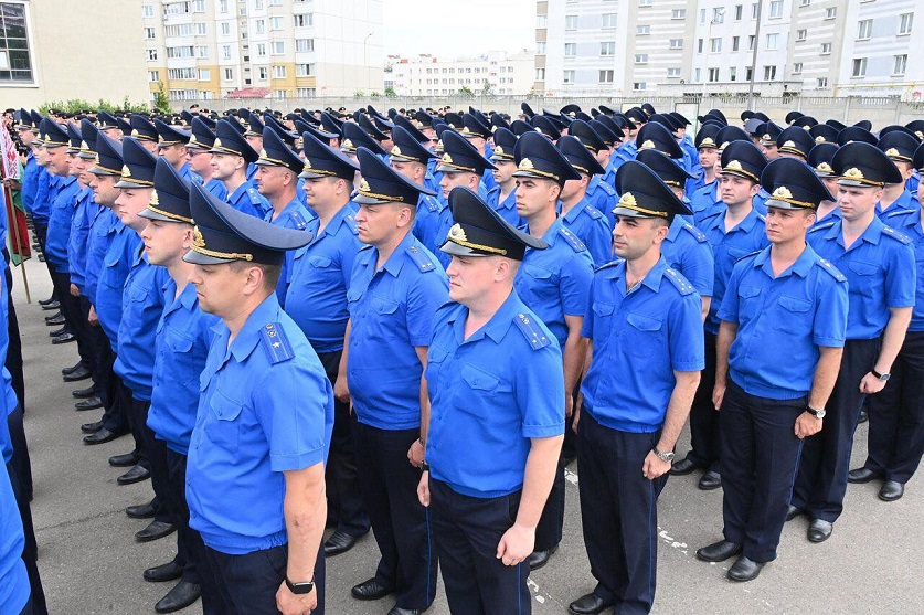 Во время тренировок на плацу следователи в форменных рубашках синего цвета, это повседневная форма сотрудников Следственного комитета. На параде на них будут светло-серые кители. И это отличительная особенность праздничного обмундирования белорусских следователей. Правильно должны быть подогнаны и фуражки.
