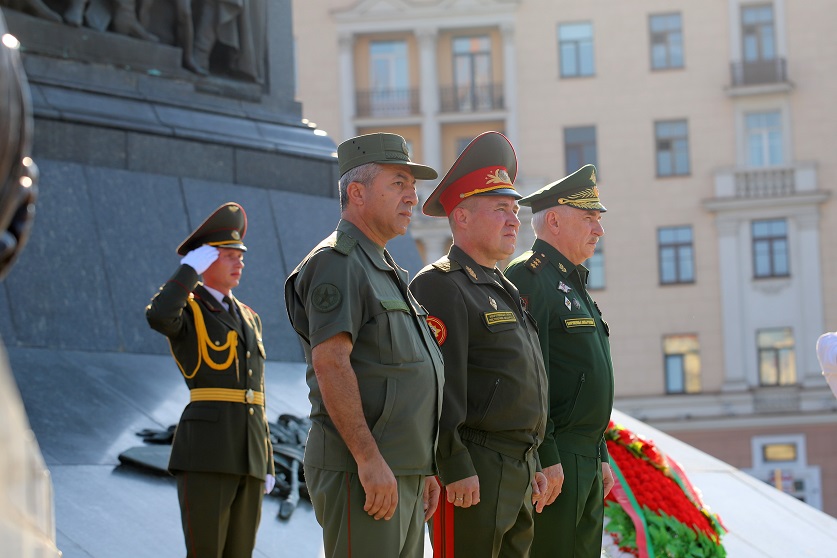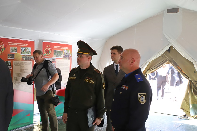 Справочно: на площадке у Центрального Дома офицеров организованы тематические выставочные экспозиции Министерств обороны Беларуси и России, Генеральной прокуратуры Республики Беларусь и государственного учреждения «Национальный архив Республики Беларусь».