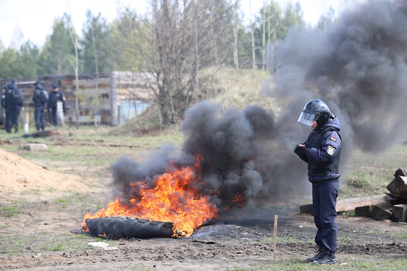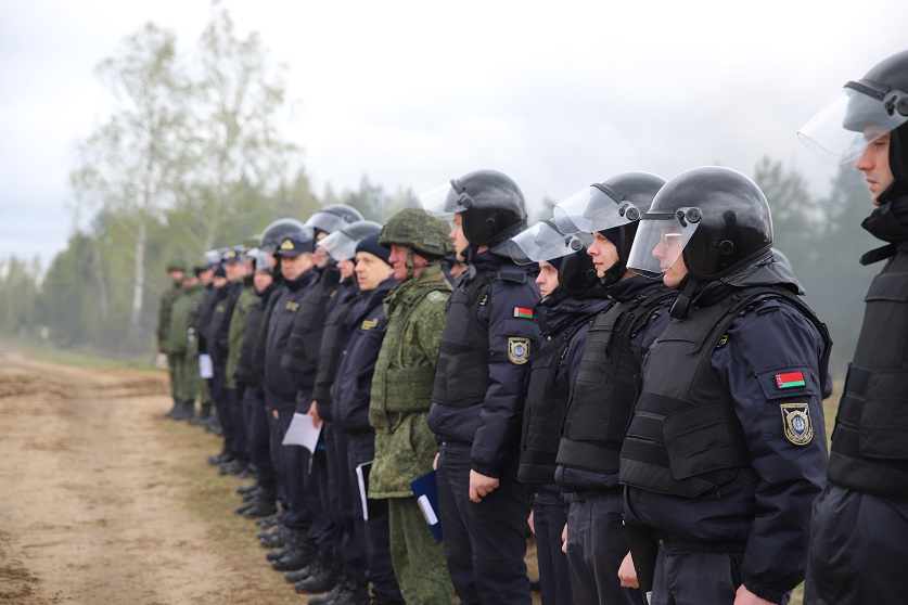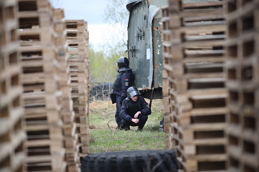 Слушатели Института Следственного комитета Республики Беларусь после теоретической подготовки в учебных аудиториях прибыли на полигон «Белая лужа» в Борисовском районе в полной экипировке. Учение проходило в условиях приближенных к боевым. Курсанты Военной академии Республики Беларусь осуществляли освобождение и зачистку населенного пункта от диверсантов, которые захватили поселок. После войсковой операции к осмотру места происшествия приступили следователи и эксперты. Они зафиксировали следы преступной деятельности условных террористов.