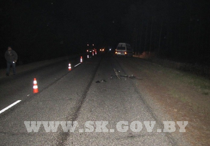 В Буда-Кошелевском районе на 11-м километре автодороги «Уваровичи–Буда-Кошелево» 19 октября примерно в 18 часов 30 минут водитель автомобиля Renault совершил наезд жителя деревни Пуща, который двигался по проезжей части в попутном направлении движения и вел велосипед. От полученных телесных повреждений мужчина, 1972 года рождения, скончался на месте дорожно-транспортного происшествия.