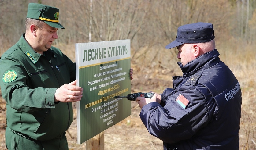 Руководство и сотрудники центрального аппарата приняли участие в республиканской акции «Неделя леса». В этом году мероприятие по созданию новых лесов также приурочено к Году исторической памяти. Следователи высадили саженцы на десяти сотках земли в Боровлянском лесхозе в Минской области. Главная цель «Недели леса» - привлечение внимания общественности к необходимости бережного отношения к лесному фонду.