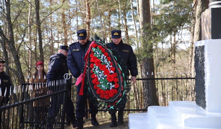 Руководство и сотрудники Следственного комитета возложили венок к памятнику и почтили память советских граждан, жестоко расстрелянных немецко-фашистскими захватчиками.