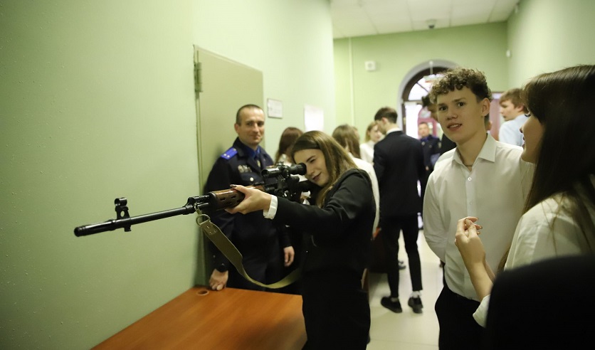 Особые впечатления у гостей вызвал Музей предварительного следствия. Гости с любопытством рассматривали форму, которую представители профессии носили в разные эпохи: во времена ВКЛ, Российской империи, СССР. Не меньше молодых людей заинтересовали и специфические экспозиции — орудия преступления.