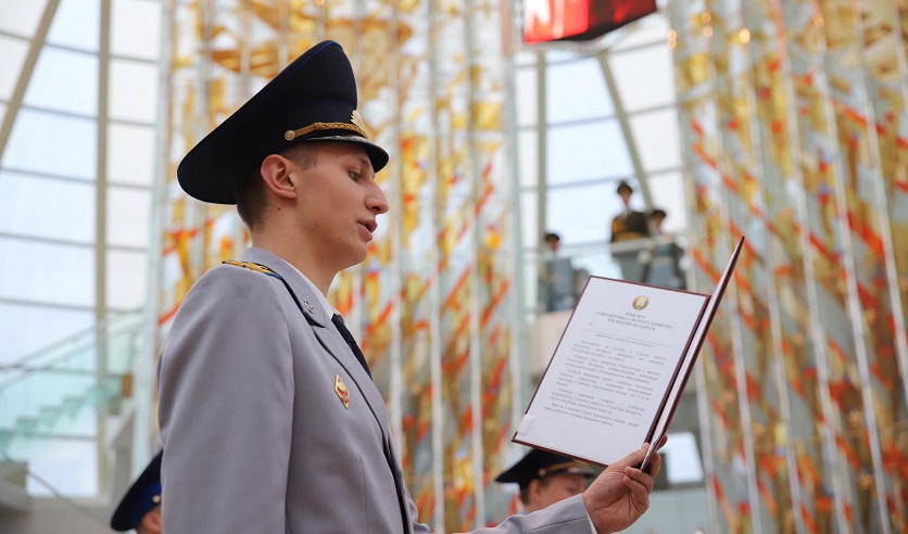 Председатель Следственного комитета Дмитрий Гора поздравил молодых сотрудников, пожелал им успешной службы, уверенности в своих силах, а также быть достойными высокого звания сотрудника Следственного комитета.