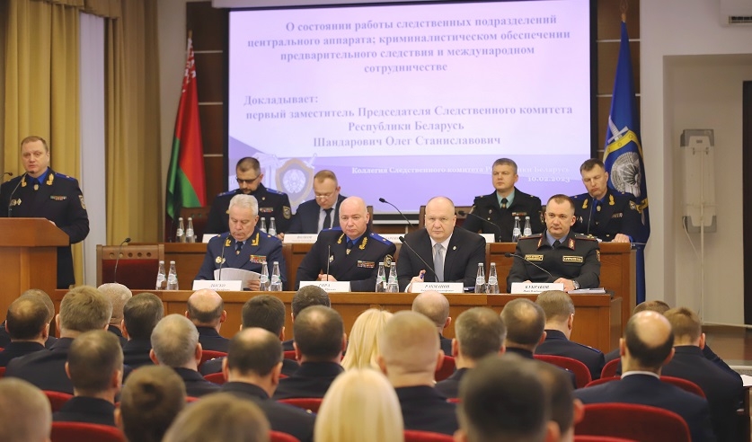 Под председательством главы Следственного комитета Дмитрия Горы, в заседании коллегии приняли участие Заместитель Государственного секретаря Совета Безопасности Александр Рахманов, Министр внутренних дел Иван Кубраков, Председатель Государственного комитета судебных экспертиз Алексей Волков, заместитель Генерального прокурора Беларуси Геннадий Дыско, заместитель Председателя Комитета государственного контроля Игорь Маршалов, руководители областных управлений и начальники структурных подразделений.