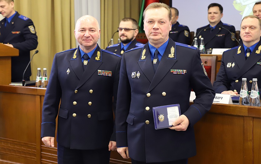 Первый заместитель Председателя Следственного комитета Олег Шандарович и начальник УСК по Брестской области Дмитрий Конопляник удостоены нагрудных знаков отличия «Ганаровы супрацоўнік Следчага камітета». Такая награда вручалась впервые.