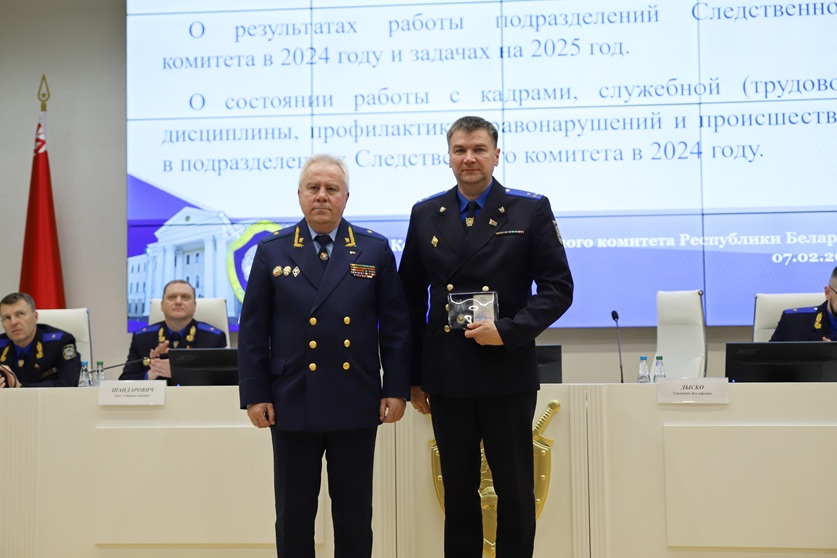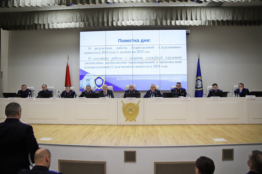 Сегодня в центральном аппарате Следственного комитета под председательством Главы ведомства Дмитрия Горы состоялось заседание коллегии, на котором подведены итоги работы за 2024 год. В мероприятии приняли участие Заместитель Государственного секретаря Совета Безопасности Александр Рахманов, заместитель Генерального прокурора Беларуси Геннадий Дыско, руководители областных управлений, начальники территориальных и структурных подразделений.