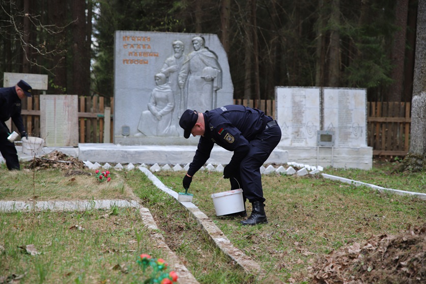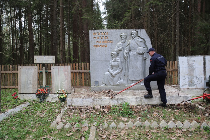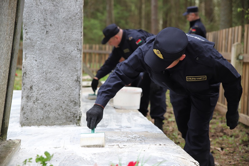 Сегодня руководство и сотрудники центрального аппарата Следственного комитета благоустроили территорию вблизи Братской могилы воинов, участников сопротивления и жертв войны в Пуховичском районе и обновили кровлю землянки на памятном месте.