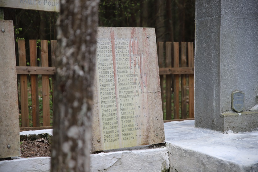 В 20 братских могилах похоронены 350 партизан, погибших в 1941-1944 годах в борьбе с немецко-фашистскими захватчиками. В 1964 году на месте захоронения установлена стела и 5 мемориальных досок.