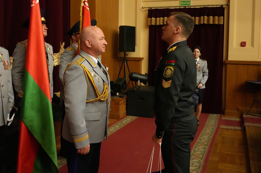 Сегодня в Центральном доме офицеров состоялось торжественное собрание, посвященное 80-летию Победы в Великой Отечественной войне. Традиционно мероприятие началось с Государственного гимна Республики Беларусь.