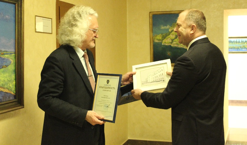 В завершение выставки Иван Носкевич вручил Владимиру Прокопцову и Валерию Шкарубо благодарности и памятные подарки, выразив надежду на дальнейшее плодотворное сотрудничество.