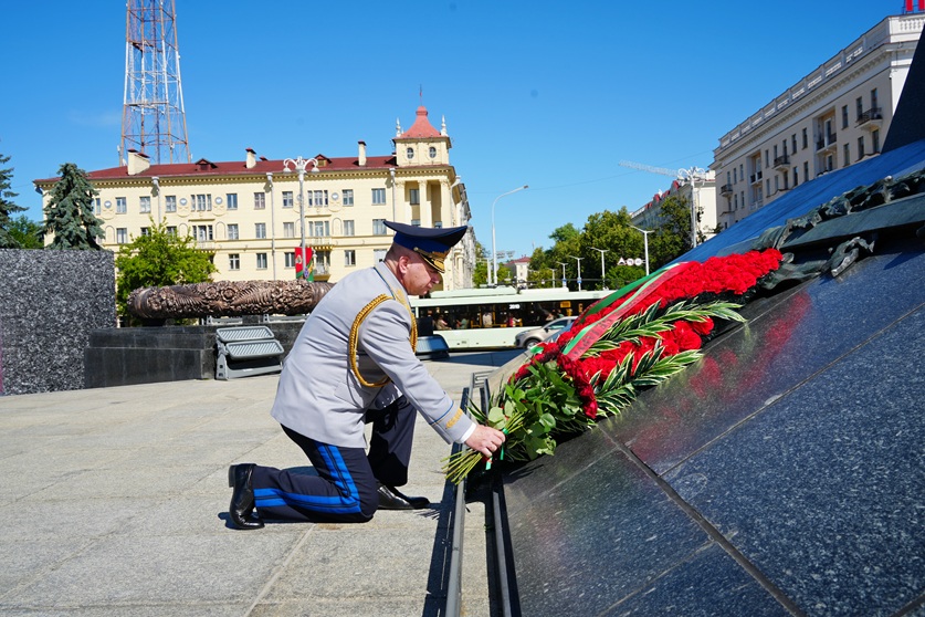 Торжественная часть началась с церемонии возложения цветов к подножью монумента Победы. Сотрудники ведомства во главе с Председателем Следственного комитета Дмитрием Горой выразили глубокую признательности и уважение к тем, кто отстоял свободу и независимость нашей Родины. Этот день еще раз напомнил о высокой ответственности каждого сотрудника правоохранительных органов перед историей и будущим страны.
