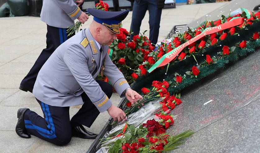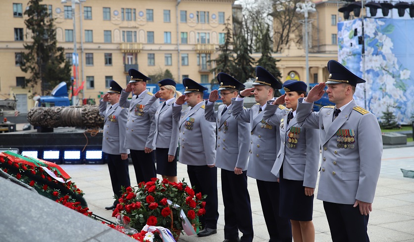 С самого утра 7 мая руководство и сотрудники Следственного комитета почтили память погибших в годы Великой Отечественной войны у монумента Победы в Минске. Представители ведомства провели традиционную торжественную церемонию возложения венков и цветов к обелиску, тем самым отдав дань памяти павшим героям войны.