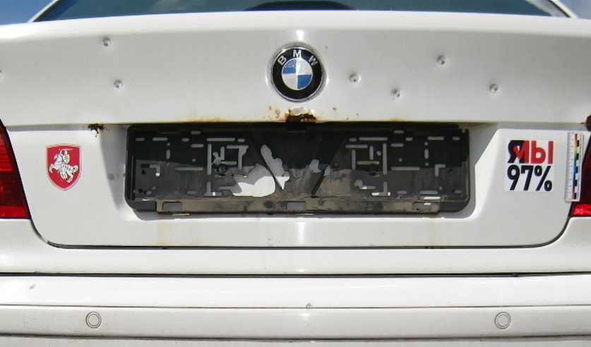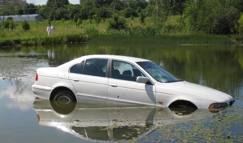 Вскоре прохожие обратили внимание на белый «БМВ» в водоеме без регистрационных знаков. В ходе его осмотра, внутри обнаружена незарегистрированная символика, две пары защитных очков, два шлема, в том числе хоккейный, две маски-респиратора, регистрационные знаки.