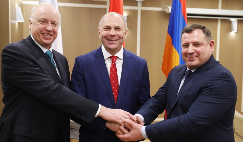 Республику Беларусь с рабочим визитом посетили председатели следственных комитетов Республики Армения и Российской Федерации Гайк Григорян и Александр Бастрыкин. В ходе визита были проведены двусторонние встречи руководства Следственного комитета Беларуси и органов предварительного расследования Армении и России.